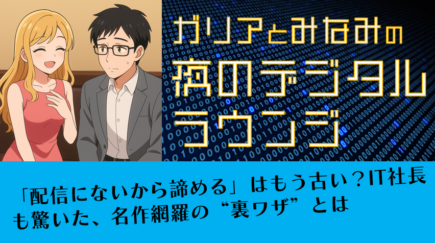 注目コンテンツ<PR> ガリアとみなみの夜更かしデジタルラウンジ ガリアとみなみの夜更かしデジタルラウンジ⓭ 今夜のテーマは「前橋市長選の結果ってどーよ」 デジタルラウンジに新キャストも登場 2026-01-15 ガリアとみなみの夜更かしデジタルラウンジ⓬ ガリア社長、自らの内面を暴かれる! 名曲『Pretender』に隠された、痛すぎる「観客」の心理。 2026-01-14 ガリアとみなみの夜更かしデジタルラウンジ⓫ 「“〇〇ちゃん”呼びがセクハラ認定!? どう思う?」 2026-01-13 ガリアとみなみの夜更かしデジタルラウンジ❿ 「不同意性交」と「昭和的恋愛観」を真面目に考える 2026-01-12 <PR>レンタルサーバーのおすすめってどこか教えて、社長! 2026-01-11 ガリアとみなみの夜更かしデジタルラウンジ❾ 「アフィリって儲かるの? ガリア社長教えて」 読者メールを巡ってガリアとみなみが大盛り上がり♡ 2026-01-10 もっと見るオピニオン 【選挙直前分析レポート】前橋市長選、ネット世論と現場の前橋の空気感 2026-01-11 【選挙直前分析レポート】前橋市長選、JINS田中氏の参戦で情勢は「丸山優勢」か 2026-01-09 人間万事塞翁が馬。清水氏が市長選に落選したのは、ある意味で良かったのかもしれない件 2025-04-15 フジのステーションコピーから、架空の新聞広告を作ってみた 2025-02-08 もっと見るAI MUSIC 【西谷恭介】レモンティーとブルージーンズ 2025-02-24 【AI MUSIC】またね! 2025-02-21 【西谷恭介】真夏のキャッチボール Ver_1 2025-02-11 【西谷恭介】夏の余韻 2025-02-06 もっと見る