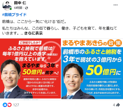 その層にとって、田中仁=「前橋を実際に変えてきた人」というイメージは圧倒的だ。