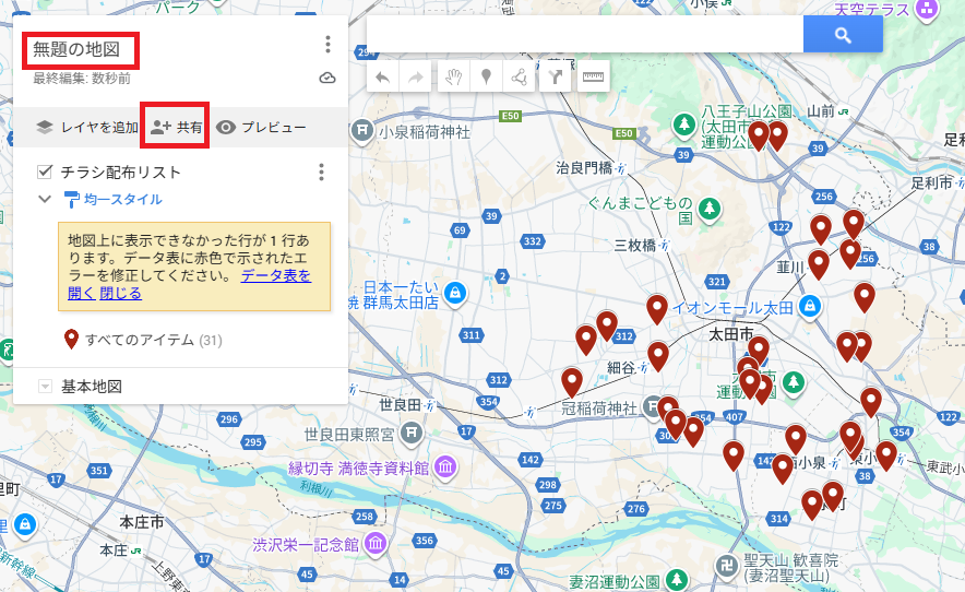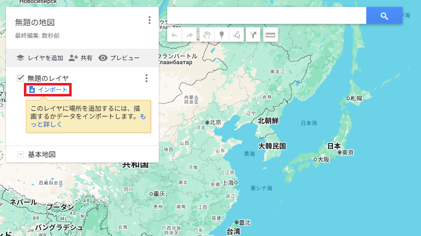 「無題の地図」というタイトルがデフォルトですが、ここに自分で分かりやすいように名前を付けてください。